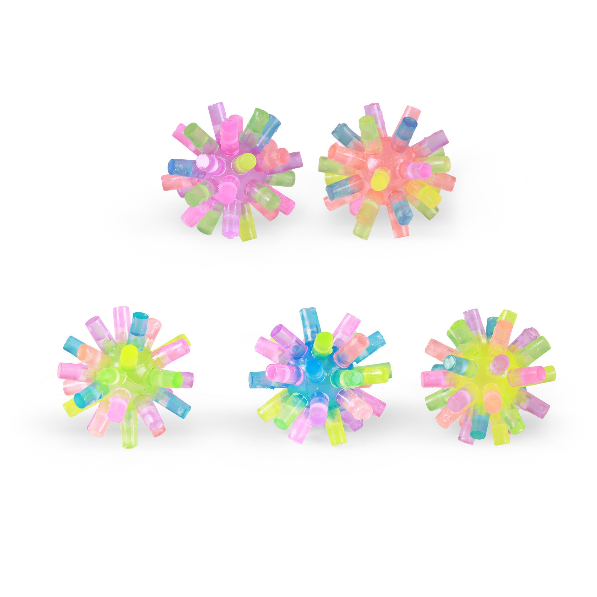 Barevný skákací míček s ostny. Jsou to hračky, se kterými se dá dosyta vyhrát či jen zkrátit čas při dlouhé chvíli.Různé barvy - zboží bude dodáváno dle skladových zásob.