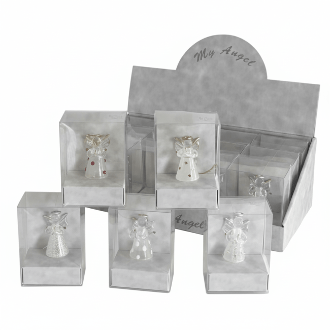 Skleněný andílek 4,5 cm v krabičce - mix - DF2508-2