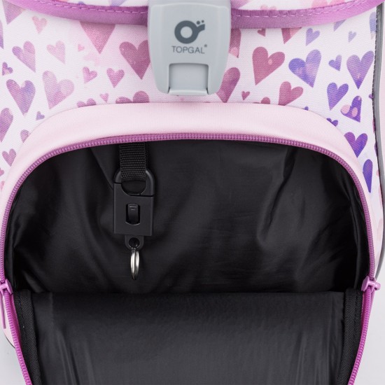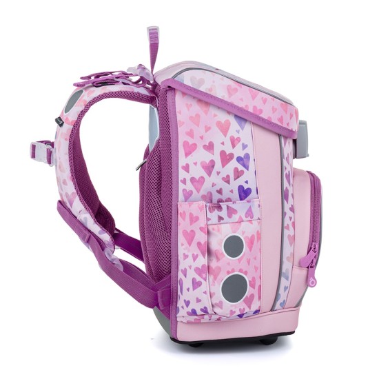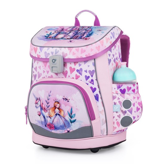 Pohádkový růžovo-fialový motiv s princeznou a jednorožcem, doplněný jemnými srdíčky a třpytivými detaily, dodává aktovce kouzelný vzhled. Vaše malá školačka si ji zamiluje na první pohled.