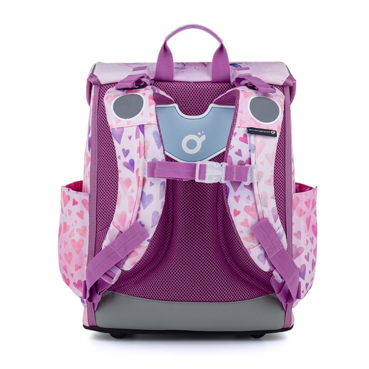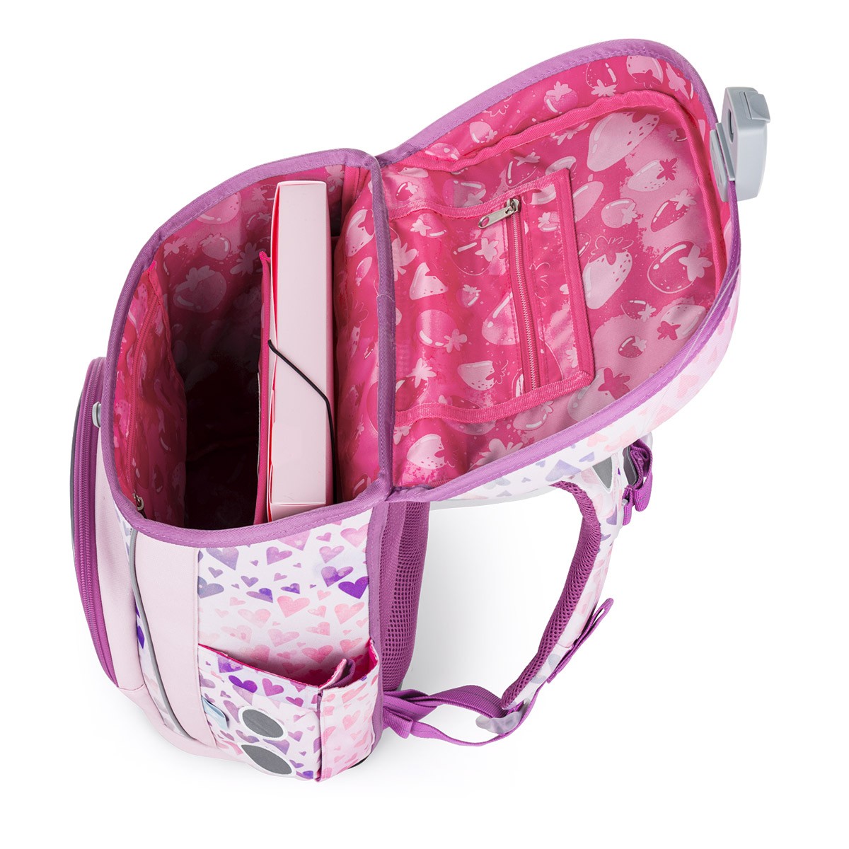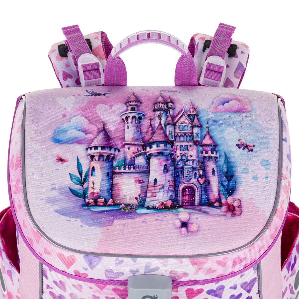 Pohádkový růžovo-fialový motiv s princeznou a jednorožcem, doplněný jemnými srdíčky a třpytivými detaily, dodává aktovce kouzelný vzhled. Vaše malá školačka si ji zamiluje na první pohled.
