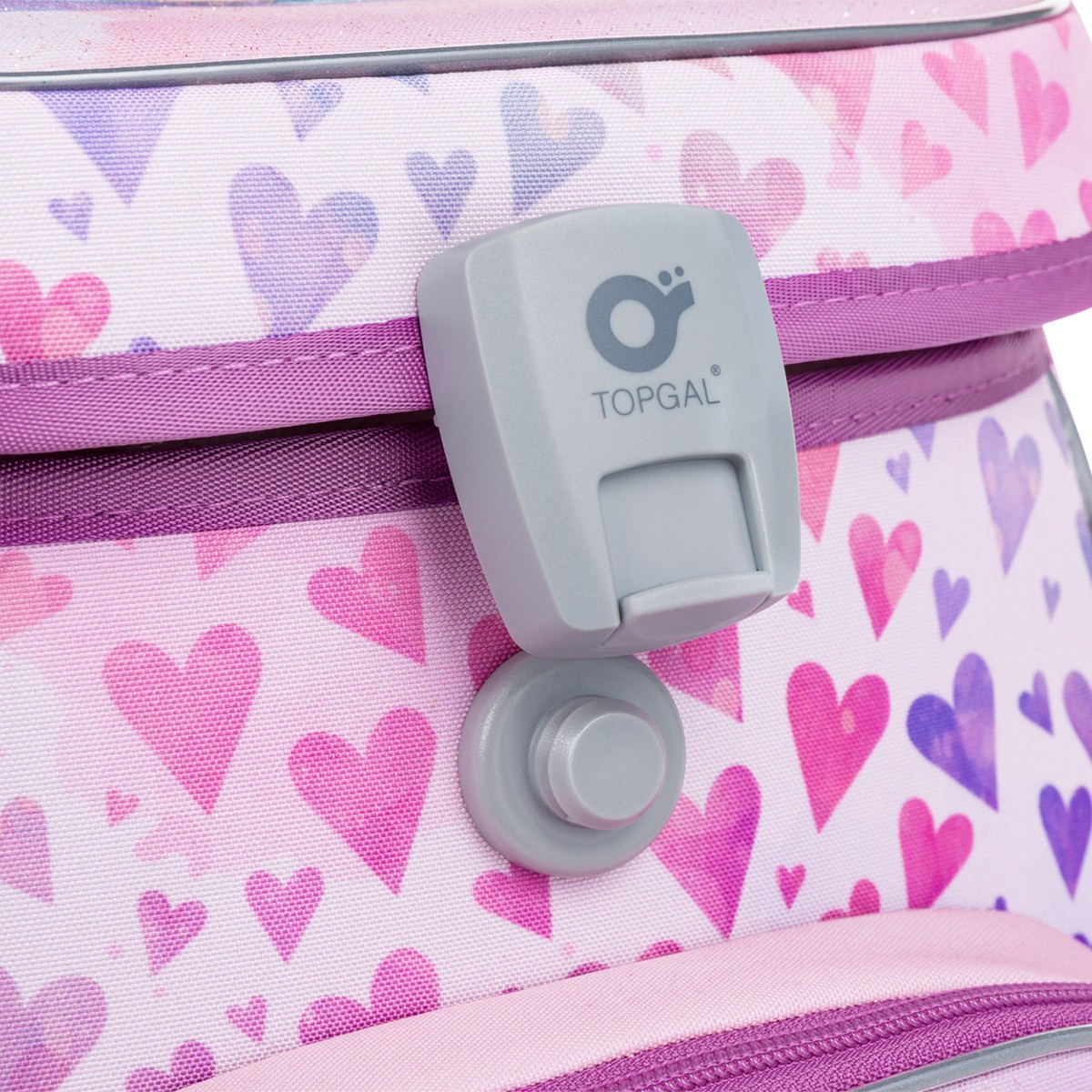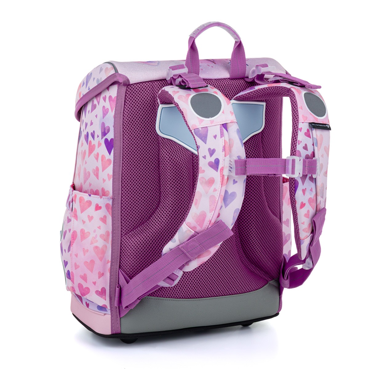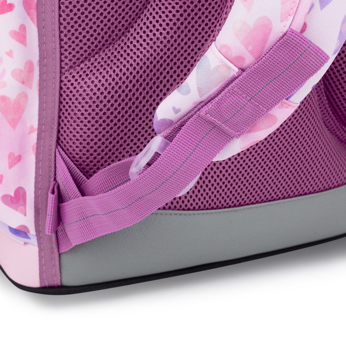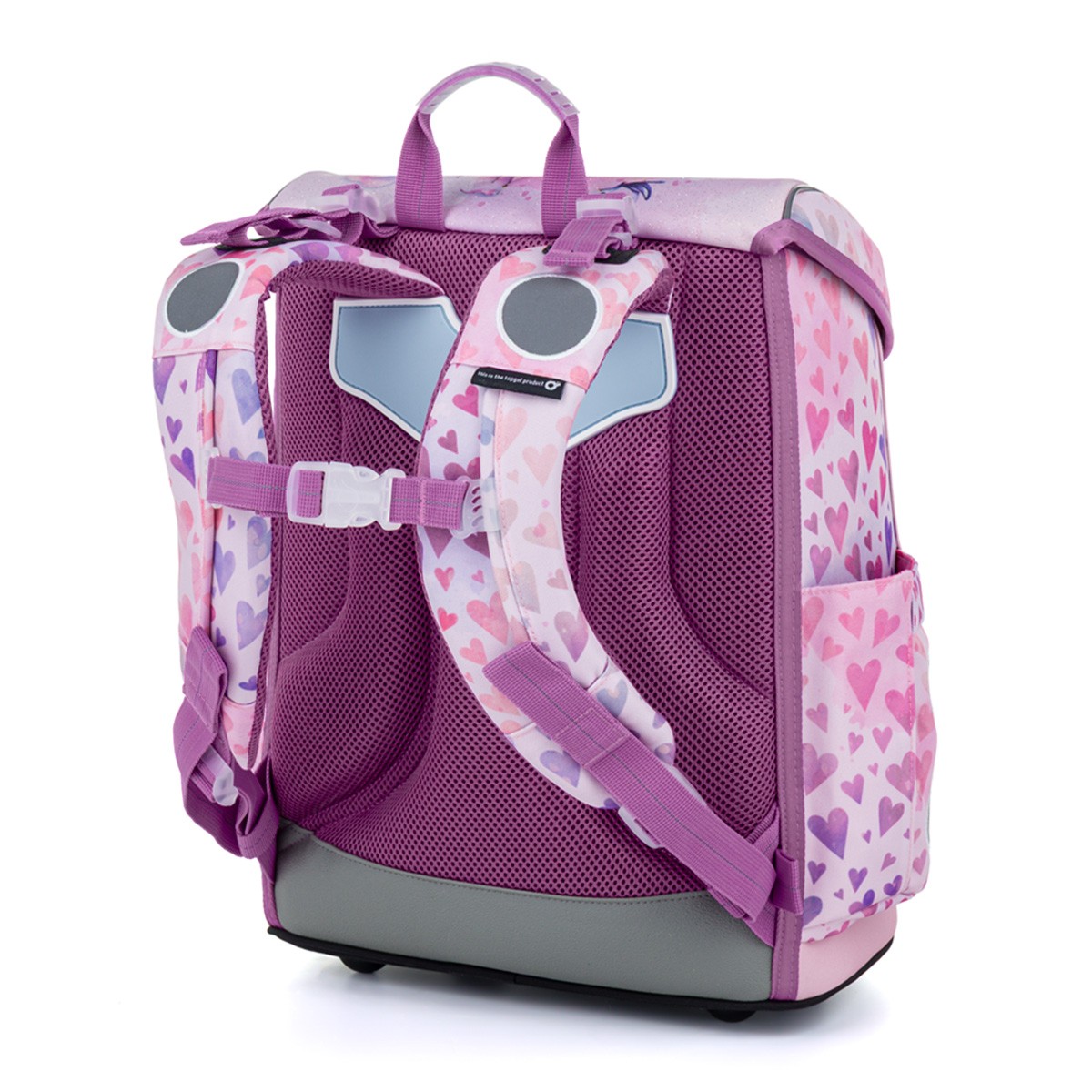 Pohádkový růžovo-fialový motiv s princeznou a jednorožcem, doplněný jemnými srdíčky a třpytivými detaily, dodává aktovce kouzelný vzhled. Vaše malá školačka si ji zamiluje na první pohled.