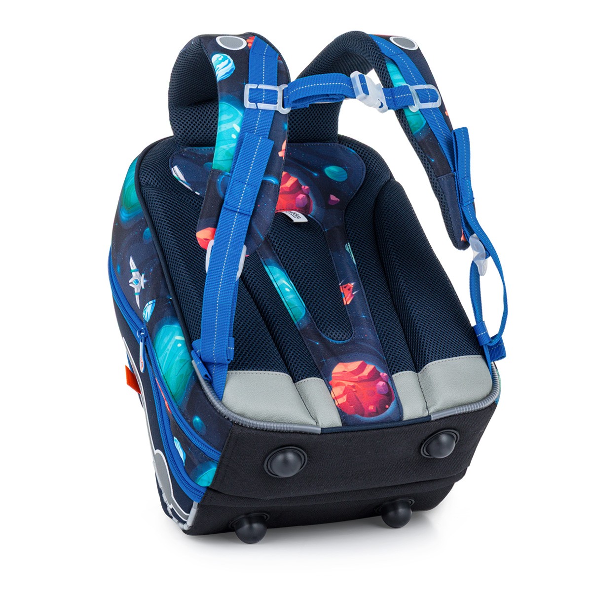 BEBE 26013 je ideální školní aktovka pro první školní roky – spojuje funkčnost, pohodlí a hravý design inspirovaný vesmírem.