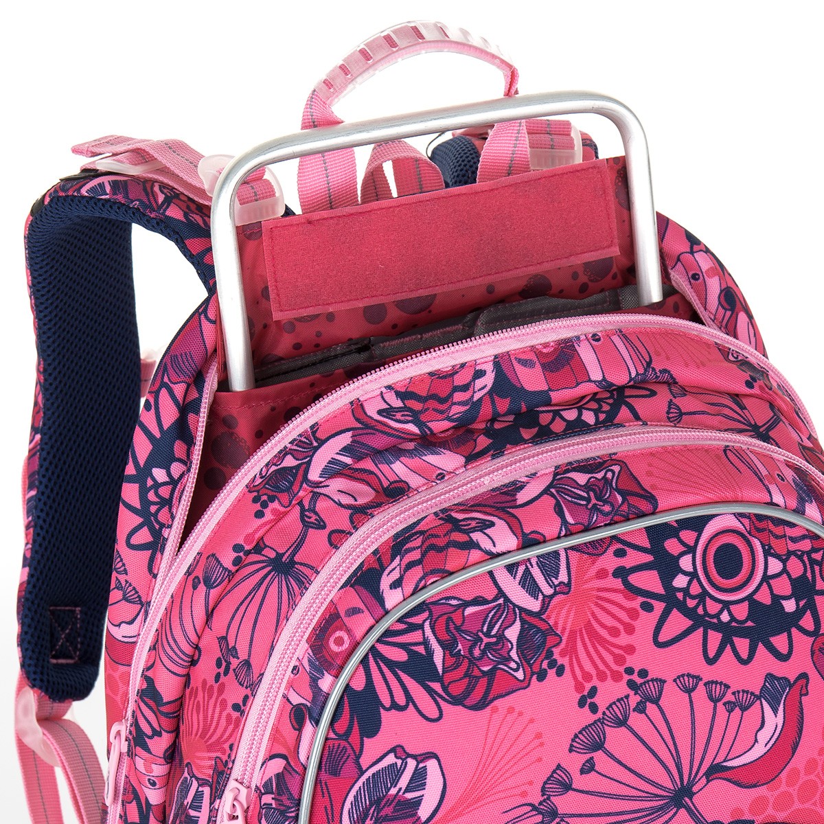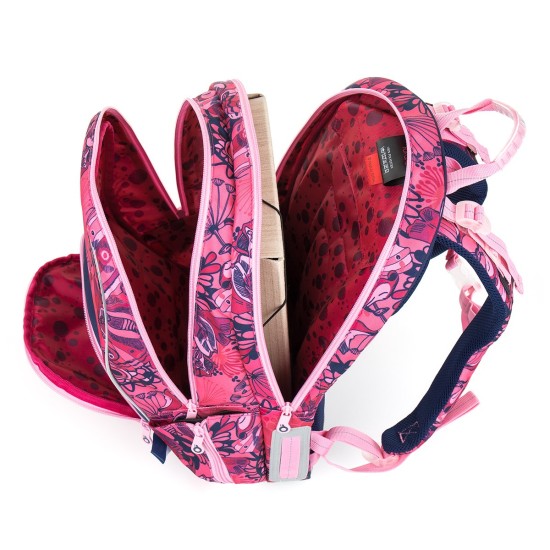 Dvě velké objemné komory pojmou všechny učebnice, desky na sešity a další drobnosti, které vaše malá slečna ve škole potřebuje každý den.