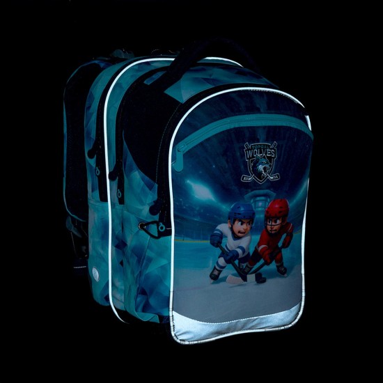 Školní batoh COCO 26017 je vyrobený ve střihu COCO, který je vhodný pro děti od 120 cm a ideální pro školáky od 1. do 4. třídy. Dynamický motiv ledního hokeje osloví všechny malé sportovce, kteří milují rychlost, týmovou hru a pohyb.