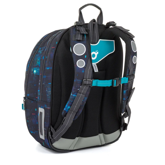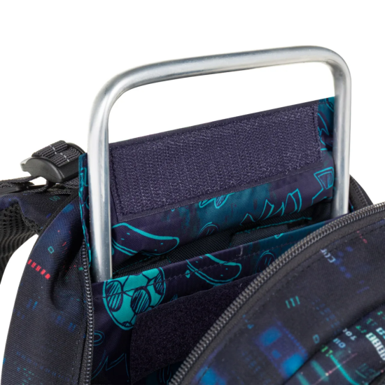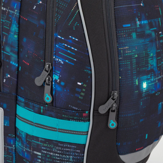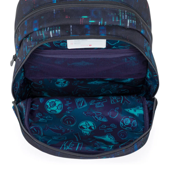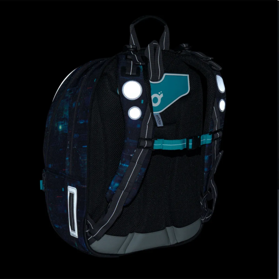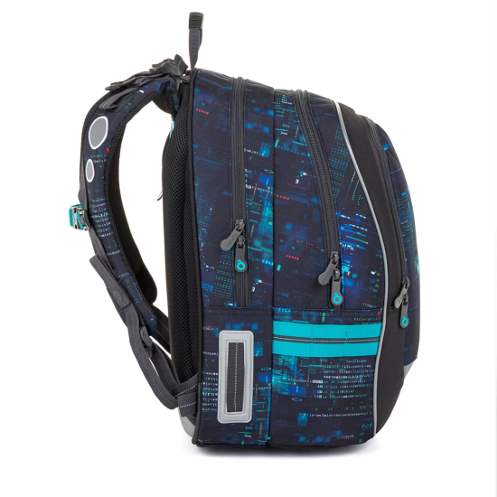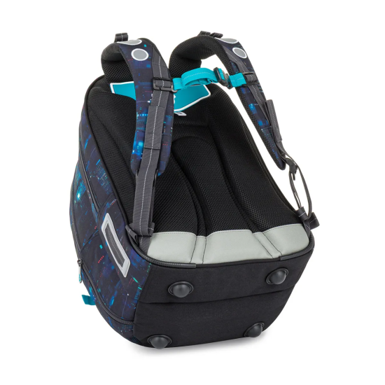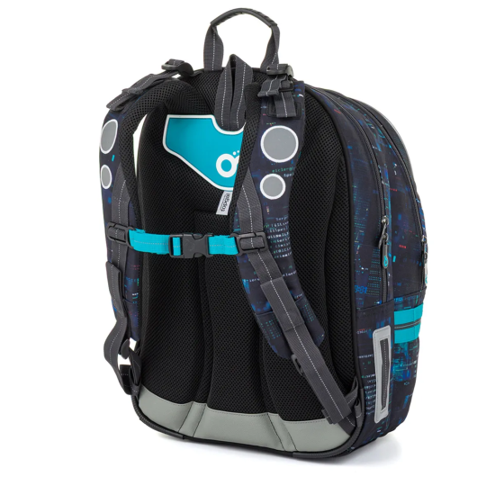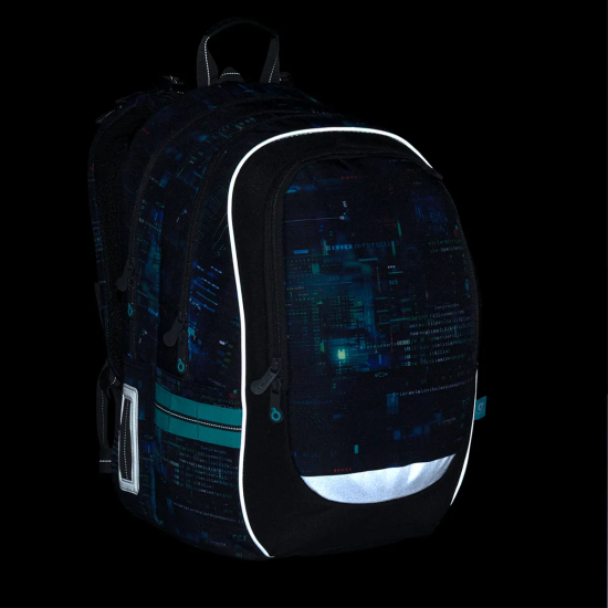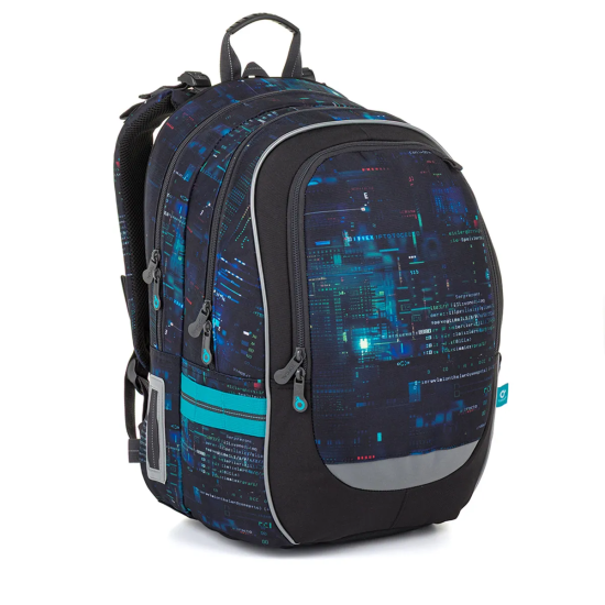 Školní batoh CODA 26021, který je vhodný pro školáky od 125 cm a ideální pro období od 2. do 5. třídy. Digitální motiv inspirovaný technologiemi, kódy a světem počítačů dodává batohu moderní vzhled, který zaujme na první pohled.