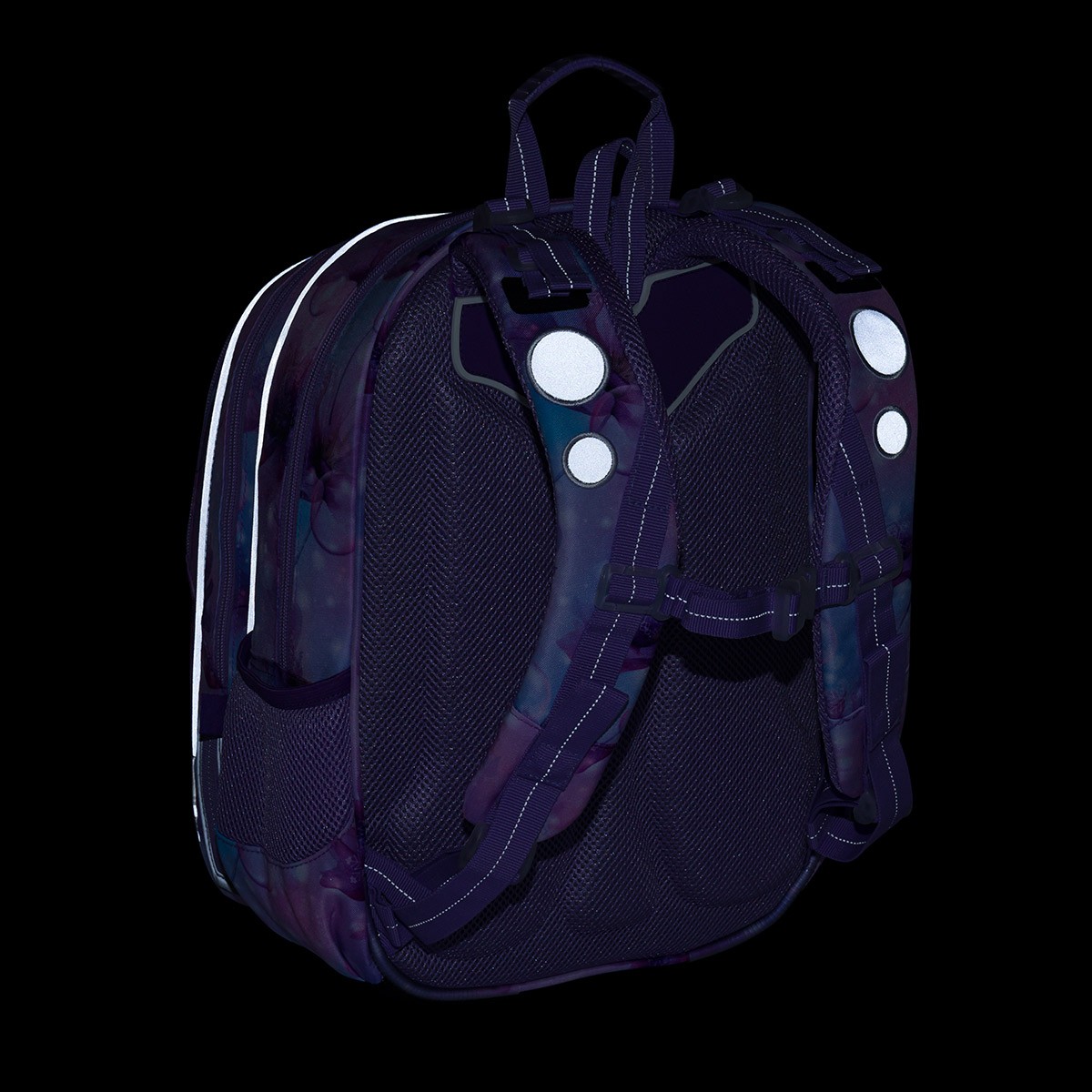 -reflexní prvky: na čele a bocích batohu, na ramenních popruzích