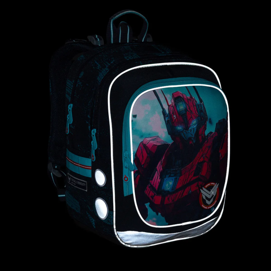 Ultralehký dvoukomorový školní batoh ENDY s futuristickým robotem a reflexními prvky. Ideální pro malé školáky od 110 cm.
