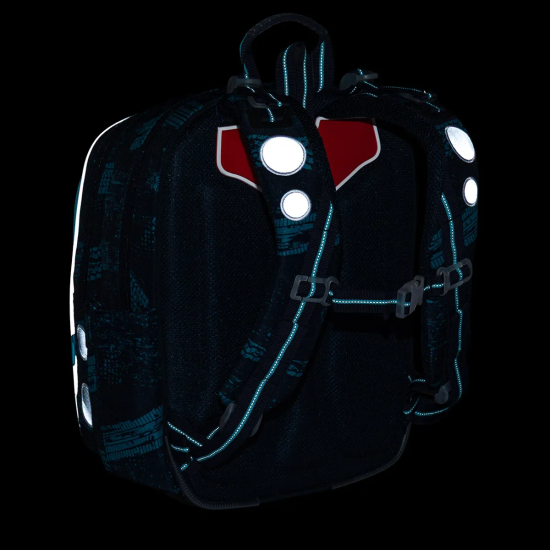 Model ENDY patří k našim nejoblíbenějším batohům pro první stupeň ZŠ. Díky váze pod jeden kilogram skvěle padne drobným školákům od 110 cm výšky. Červený robot na tmavém podkladu si okamžitě získá všechny malé fanoušky akčních hrdinů a technologií. Ještě navíc jeho oči svítí ve tmě!