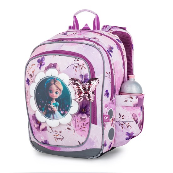 Lehoučký dvoukomorový model ENDY 26003 váží jen něco málo přes kilogram a perfektně padne drobným školačkám od první do třetí třídy základní školy. Jemný květinový motiv s kouzelnou vílou a třpytivým detailem dělá z batohu krásný doplněk, který si malé slečny zamilují na první pohled.