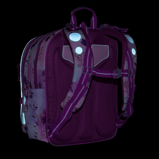 Spodní část batohu chrání pevné plastové nožky, díky kterým batoh výborně stojí a zůstává stabilní i při každodenním používání. Samozřejmostí jsou reflexní prvky na čele, bocích i ramenních popruzích, které zvyšují bezpečnost dítěte na cestě do školy.