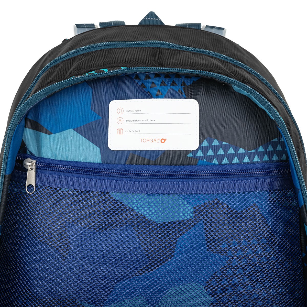 Přední komora je o něco širší než zadní, najdete v ní jmenovku a menší síťovou kapsu na zip.