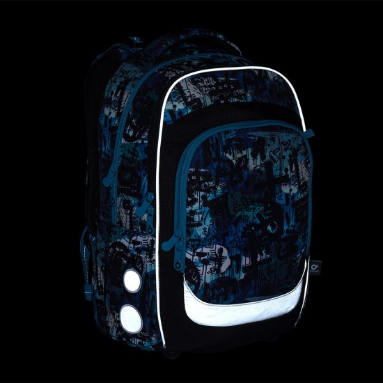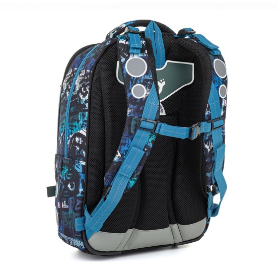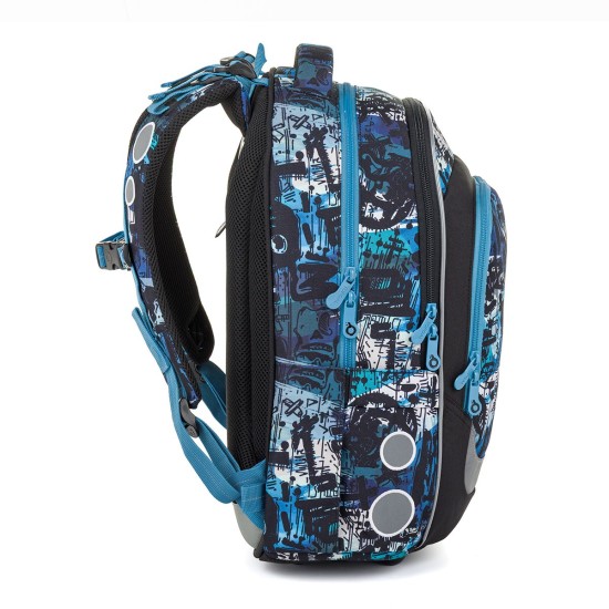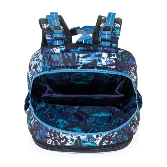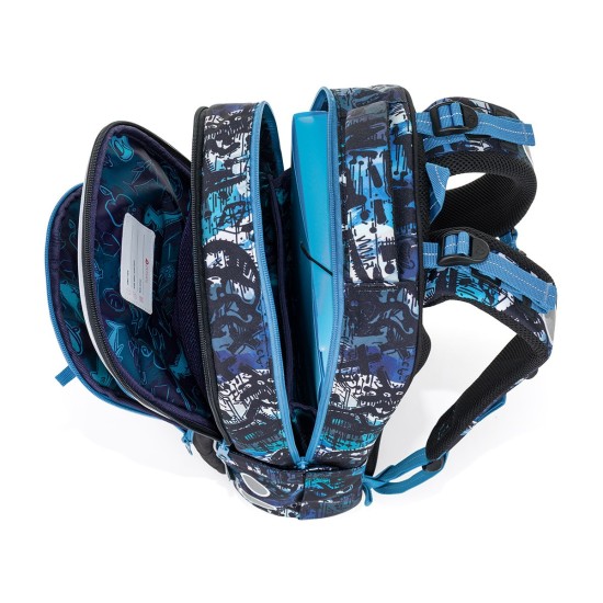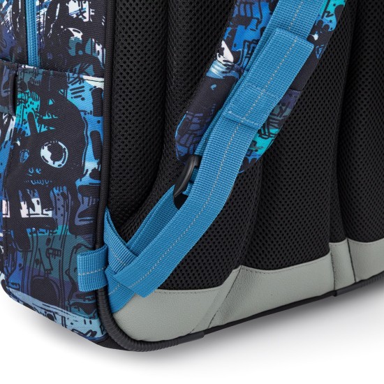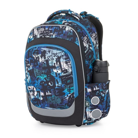 Školní batoh ve střihu LORI je lehký, pohodlný a díky své velikosti vydrží až do 6. třídy. Výrazný streetový motiv v modro-černých tónech osloví děti, které chtějí moderní a funkční batoh na několik školních let.