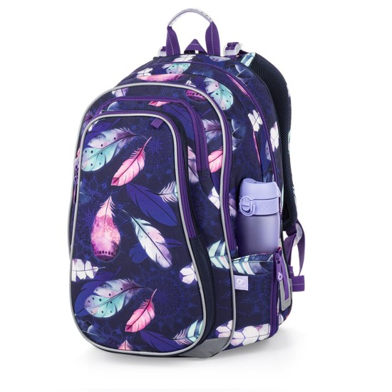 Školní batoh LYNN 26008 je prostorný dvoukomorový model, který skvěle sedí školačkám od 1. do 4. třídy. Tmavě fialový design s barevnými pírky v boho stylu působí originálně a elegantně – ideální pro holky, které chtějí batoh, co je bude bavit i několik školních let.