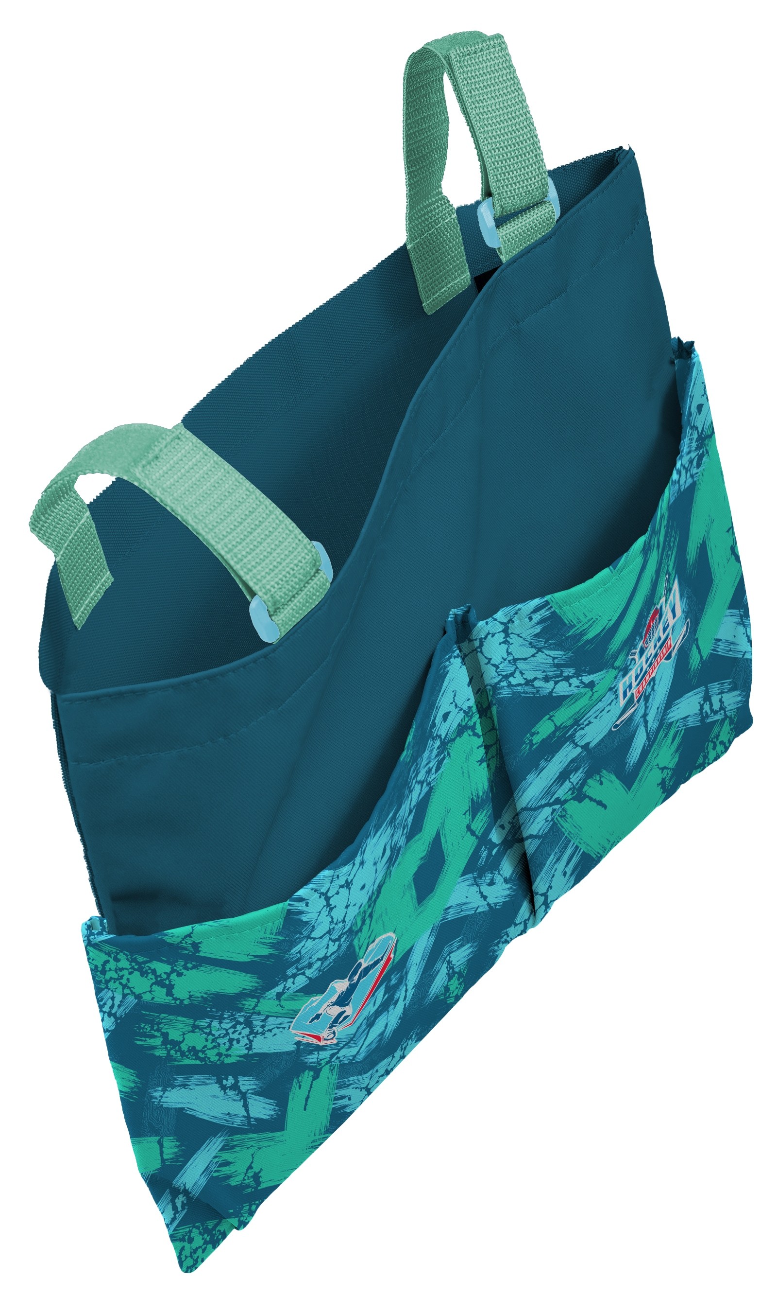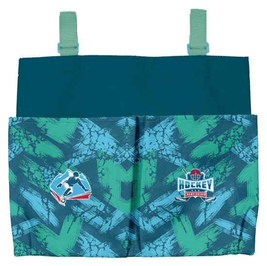 Díky suchému zipu ho snadno připevníte k lavici. K dispozici je jedna prostorná kapsa a dvě menší, které poskytují ideální prostor pro všechny potřebné věci.
