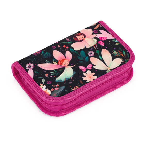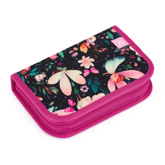 Jednopatrové školní pouzdro se dvěma klopami. Díky gumovým úchytům se do nich vejde celkem 21 pastelek, tužek a fixek. Tři širší úchyty poslouží na pravítko, kružítko či nůžky. Dva větší na gumu a ořezávátko.