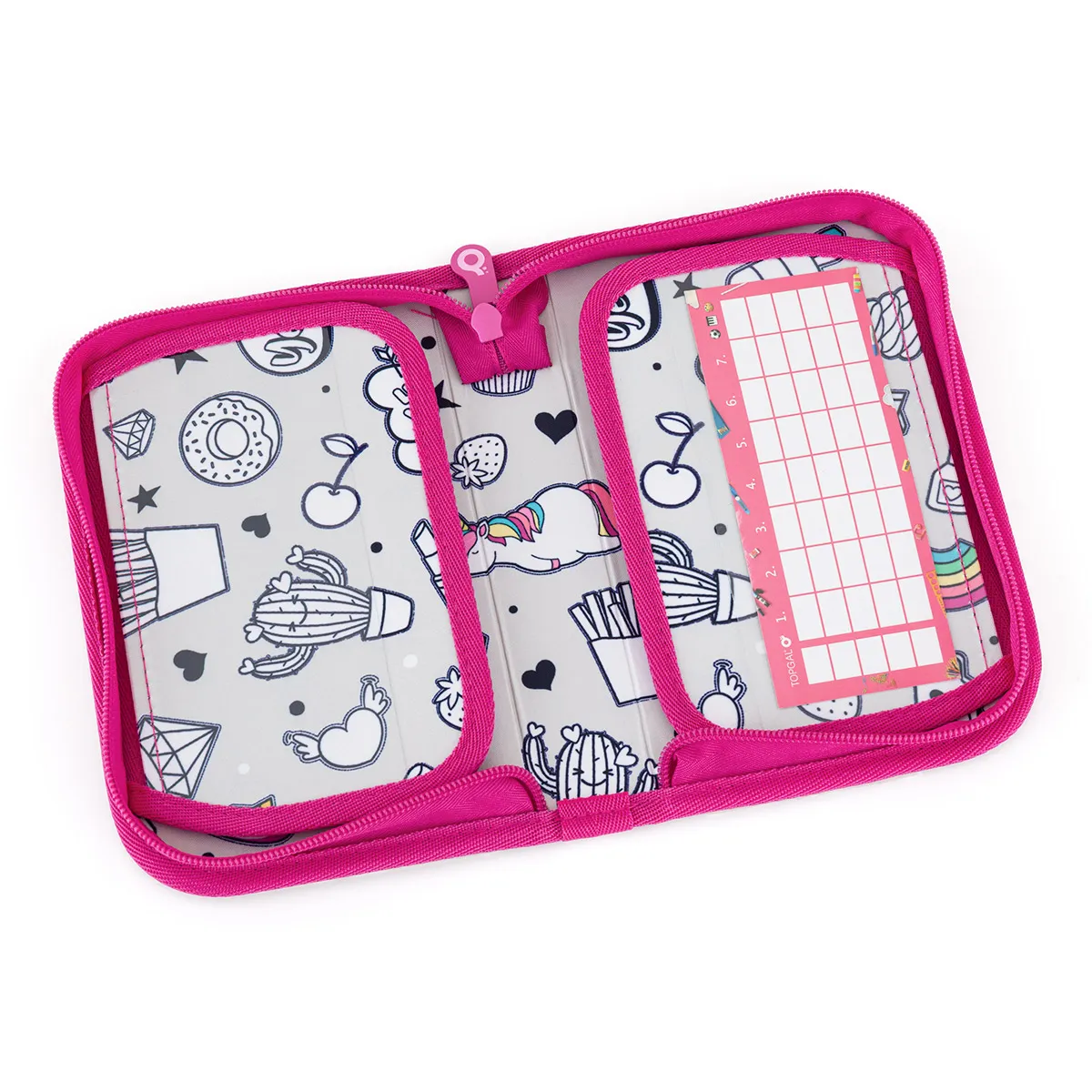 Kreslení povoleno! Vnitřní podšívka pouzdra je vyrobena z šedé látky s natištěnými obrázky. Ty si mohou děti vybarvit dle nálady a chuti. Naše malé doporučení - pro vybarvování budou lepší pastelky, fixy by se mohly rozpíjet.