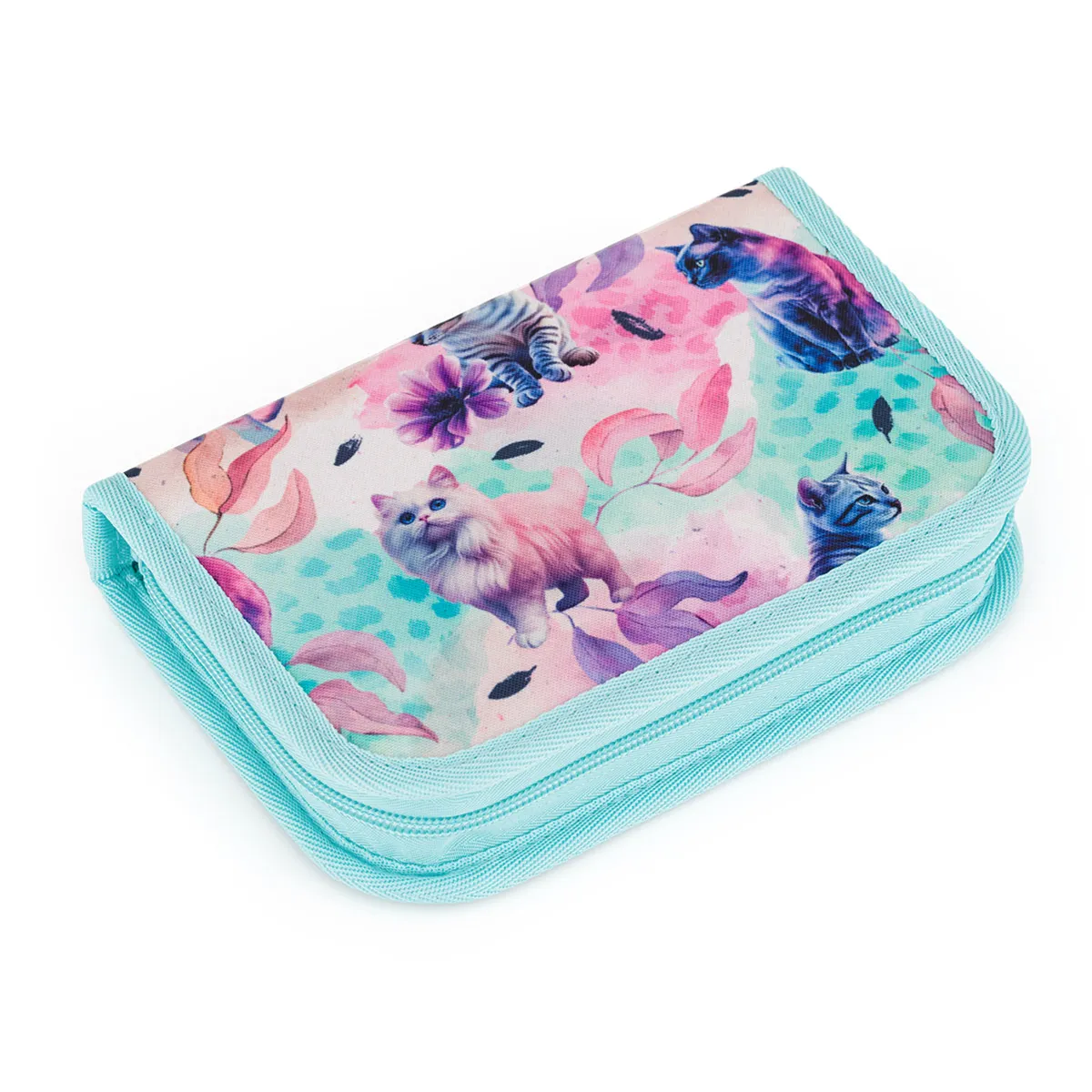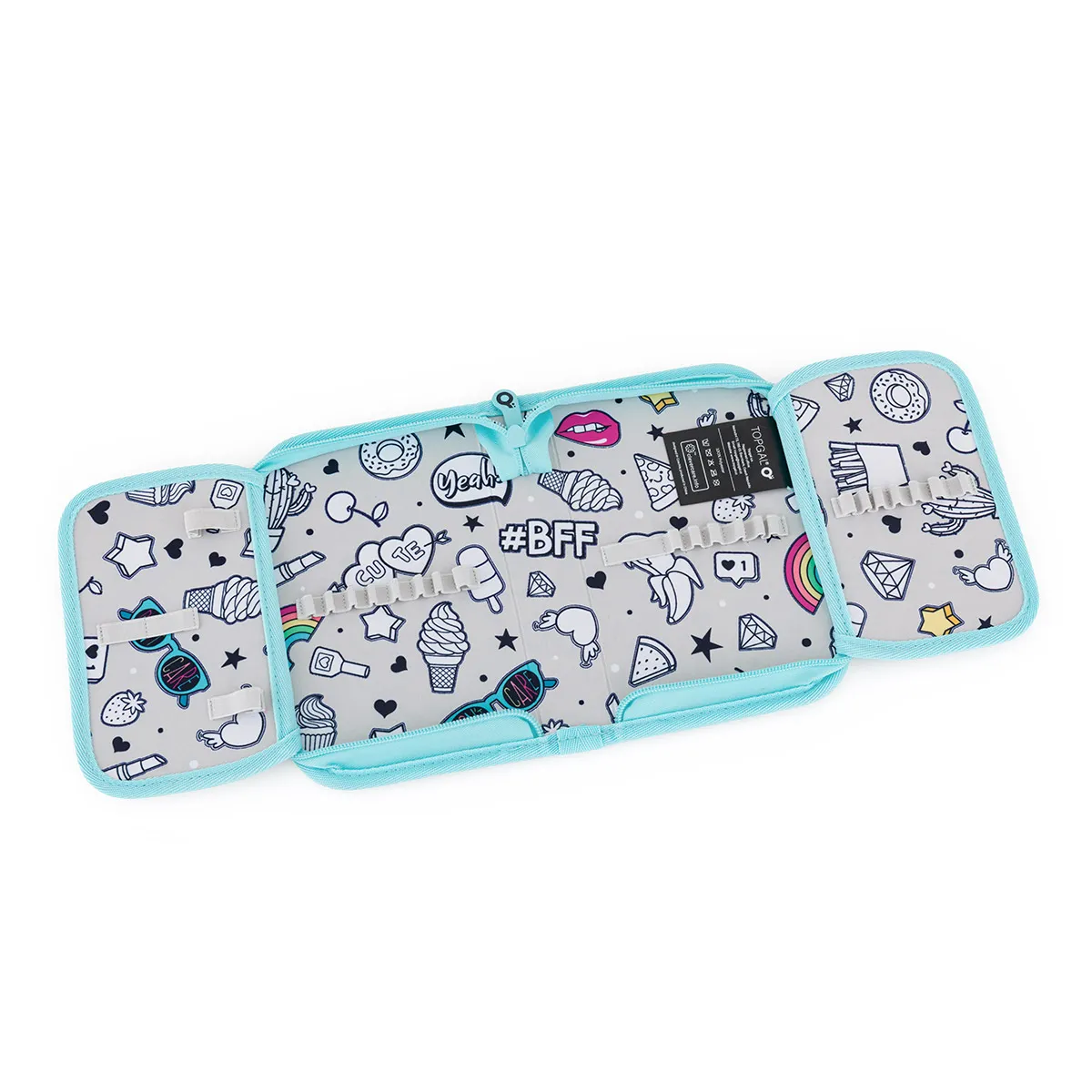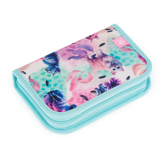 Jednopatrové školní pouzdro se dvěma klopami. Díky gumovým úchytům se do nich vejde celkem 21 pastelek, tužek a fixek. Tři širší úchyty poslouží na pravítko, kružítko či nůžky. Dva větší na gumu a ořezávátko.