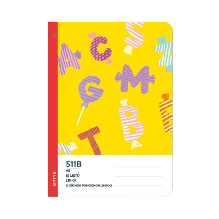 Školní sešit 511B - Písmena - A5, linkovaný, 10 listů s pomocnou linkou - 2157
