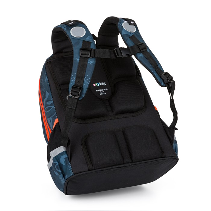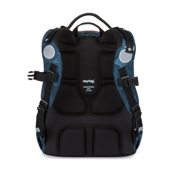 Výhodný 3dílný set batohu OXY JUMPER, penálu a sáčku na cvičky. Školní batoh OXY JUMPER je ideální volbou pro malé školáky, kteří potřebují pohodlný a odolný batoh. Má vylepšený anatomicky tvarovaný zádový panel a odpružený systém ramenních popruhů, díky kterému se batoh příjemně nosí i při větším zatížení. Dvě prostorné komory nabídnou dostatek místa na učebnice, sešity i další školní potřeby. Po stranách najdete otevřené meshové kapsy na láhev a jiné drobnosti. Samozřejmostí je zpevněné nepromokavé dno, velké množství reflexních prvků a praktická přední kapsa na svačinový box. Batoh má nastavitelné ramenní popruhy, přítažné popruhy a hrudní popruh pro rovnoměrné rozložení váhy.Hmotnost činí 990 g, objem 23 l a nosnost 8 kg. Součástí setu je také jednopatrový penál a sáček na cvičky, sladěné do stejného designu.