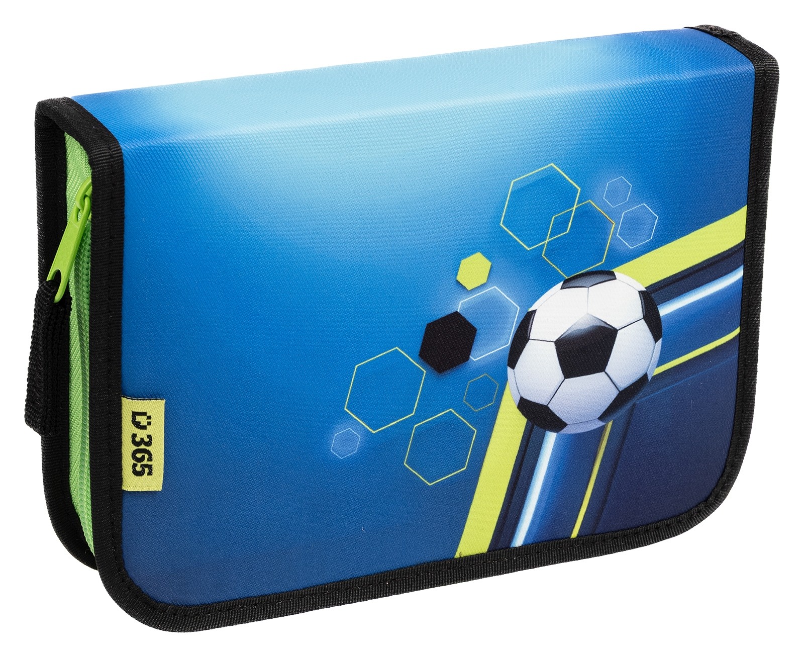 2. Školní penál jednopatrový, prázdný s dvěma chlopněmi, o rozměru š. 19,5 x v. 4,5 x h. 13,5 cm