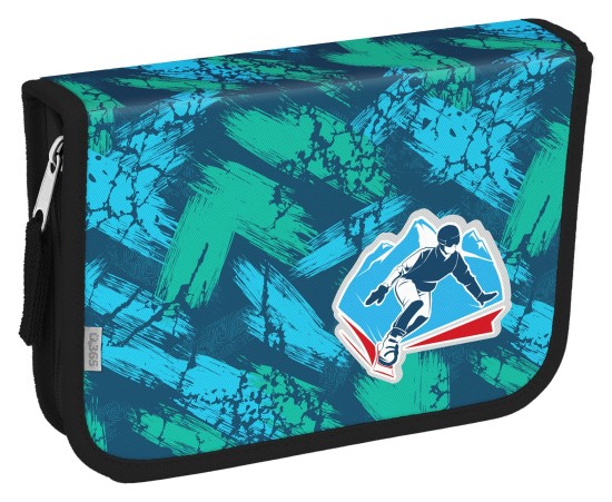 2. Školní penál jednopatrový, prázdný s dvěma chlopněmi, o rozměru š. 19,5 x v. 4,5 x h. 13,5 cm