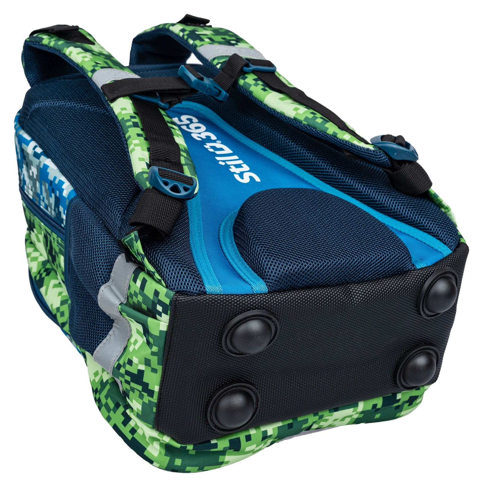 • Voděodolné dno s plastovými nožičkami ochrání obsah batohu před nežádoucí vlhkostí zespodu