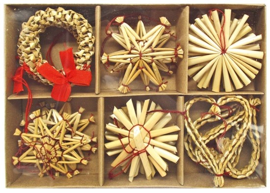 Slaměné ozdoby v krabičce - 18 ks - 2332