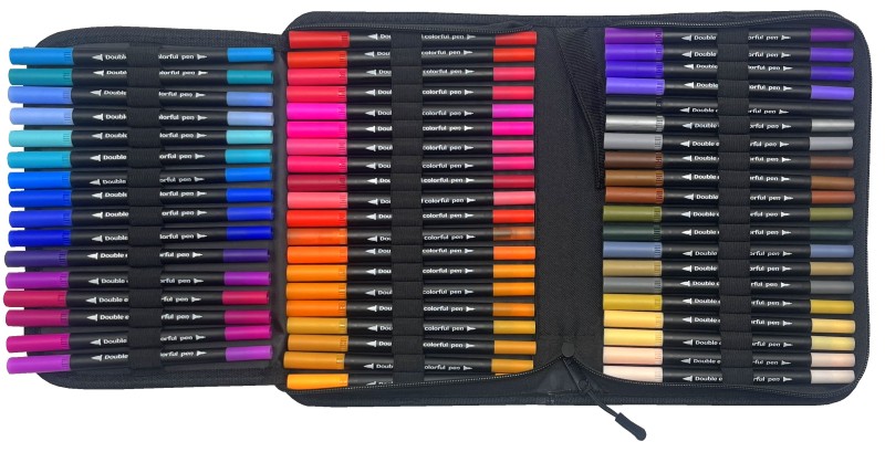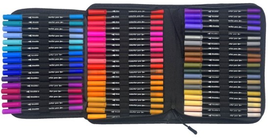 Kulaté oboustranné fixy se štětcovým a tenkým hrotem na druhé straně.