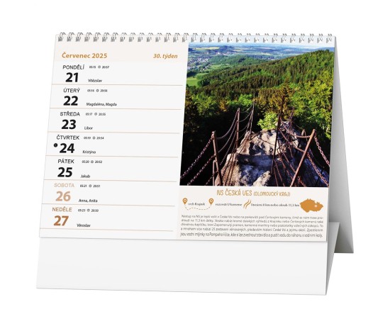 Stolní kalendář s týdenním kalendáriem s informacemi o naučných stezkách v naší zemi.