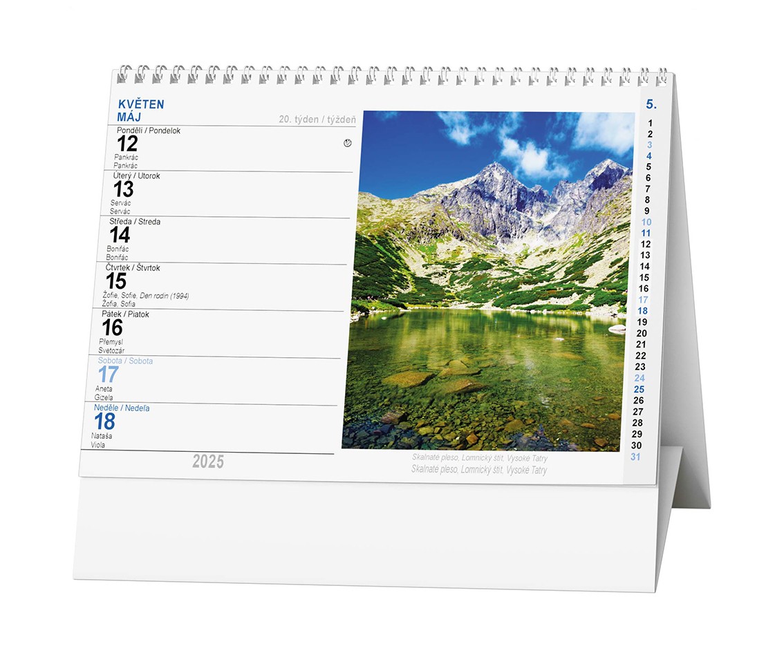 Stolní kalendář s týdenním kalendáriem s obrázky hor našich sousedů na Slovensku.