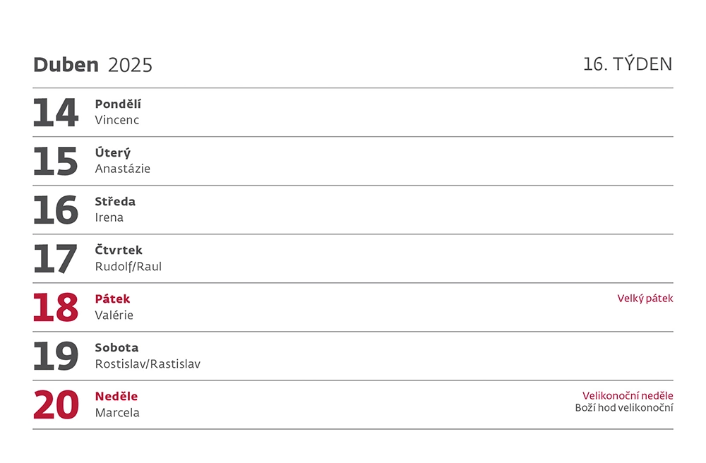 Stolní kalendář 2025 - Týdenní "S" - S42-25