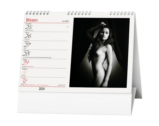 Stolní kalendář s týdenním kalendáriem a s erotickými obrázky v černobílém stylu pro všechny muže.