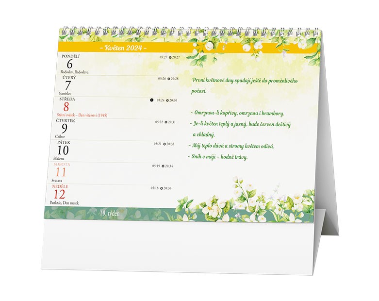 Stolní kalendář s týdenním kalendáriem a a pranostikami na každý týden.