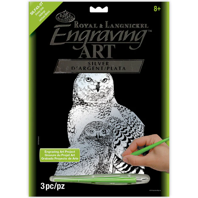 Škrabací obrázek - stříbrný - Sněžně sovy