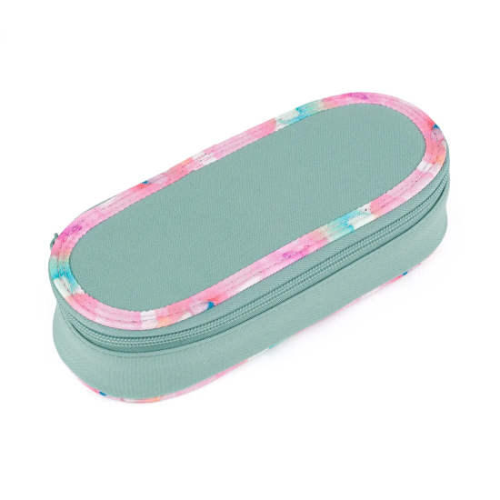 Oválný penál pro všechny starší školáky a studenty. Uvnitř pouzdra je síťová kapsička na zip a klopa s devíti gumičkami na propisky. Volný prostor pod klopou slouží pro další psací potřeby – pastelky, fixy, ale i pravítko nebo kružítko.