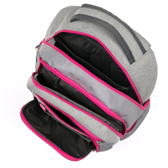 Batoh se skládá ze dvou hlavních kapes a jedné menší přední kapsičky opatřený pevnými zipy a praktickými poutky.