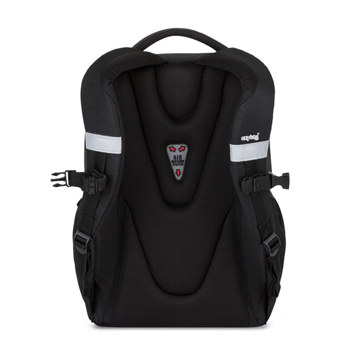 Batoh z řady OXY Touch je ideální volbou pro školáky od 3. třídy, kteří potřebují dostatek prostoru na vše důležité do školy i na volnočasové aktivity. Tříkomorové uspořádání batohu poskytuje dostatek místa na učebnice, sešity, svačinu a další nezbytnosti. Hlavní prostorná komora obsahuje přihrádku na notebook, zatímco přední kapsa je vybavena organizérem a karabinou na klíče. Do boční kapsy snadno uložíte láhev s pitím. Díky anatomicky tvarovaným a prodyšným zádům spolu s nastavitelnými ramenními a hrudními popruhy se batoh pohodlně nosí i při plném zatížení. Zpevněné nepromokavé dno spolehlivě chrání obsah před vlhkostí, reflexní prvky zase zajišťují lepší viditelnost dítěte na cestě. Na přední straně batohu se nachází praktická gumička, pod kterou lze upevnit například tenkou mikinu.Délka zádového panelu je 43 cm, objem činí 25 l, hmotnost batohu je 900 g a jeho nosnost je 8 kg.