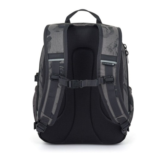 Dvoukomorový batoh v elegantní šedé barvě se stylovou nášivkou. Záda batohu jsou polstrovaná a anatomicky tvarovaná z měkké pěny. Uvnitř zadní komory je umístěna polstrovaná kapsa na notebook i tablet.