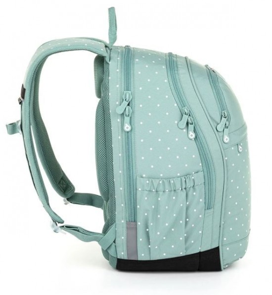 Studentský batoh Topgal RUBI 23021 Mintový studentský batoh s rošťáckými puntíky a stylovou nášivkou.  Ideální pro studentky na střední i na druhém stupni základní školy. Objemný dvoukomorový batoh s puntíky a stylovou nášivkou. Záda batohu jsou polstrovaná, anatomicky tvarovaná a p zobrazit celý popis
