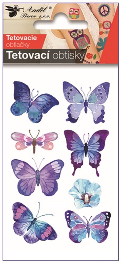 Tetovací obtisky Motýli modří, 10,5 × 6 cm