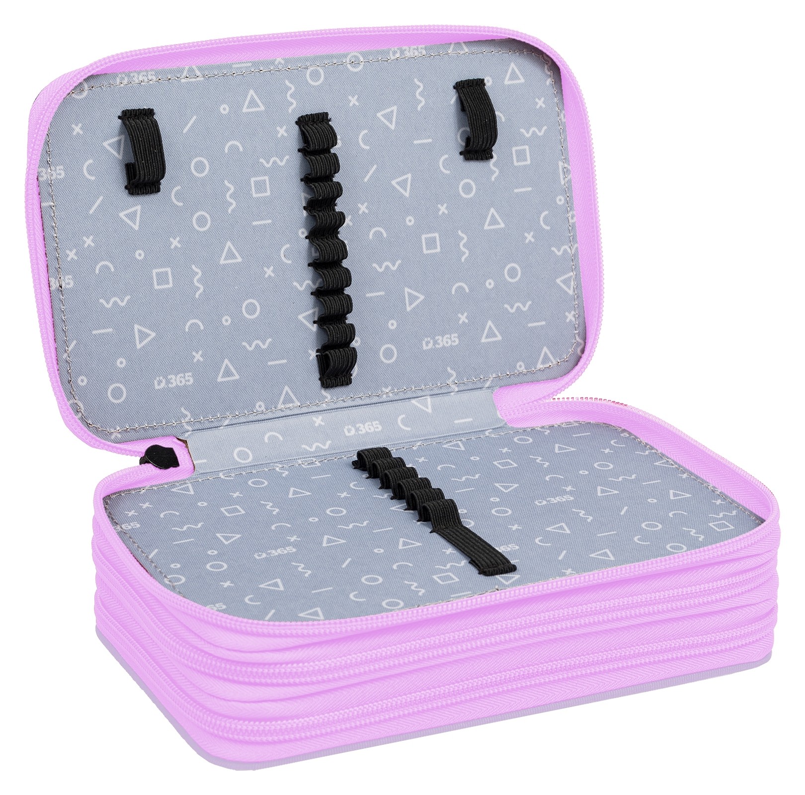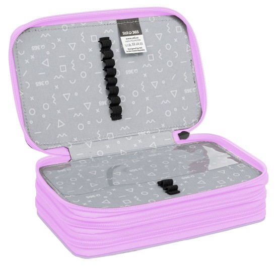 Ve druhém patře je umístěna průhledná kapsička na rozvrh a 10 pevných gumiček na psací potřeby různých velikostí.