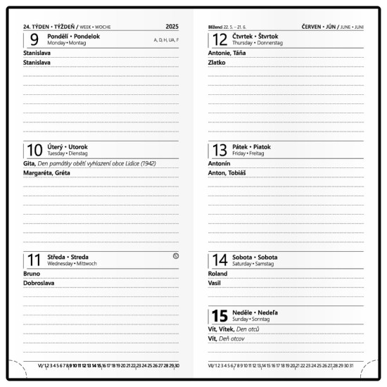 | Velikost diáře | Kapesní (81 x 120 mm) | |