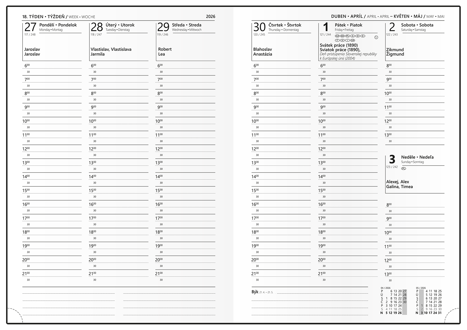Týdenní diář ve formátu A4 v jednoduchém stylu a v hladkém provedení. Skvělý formát diáře Vám usnadní naplánovat jakékoli schůzky a úkoly na celý týden.