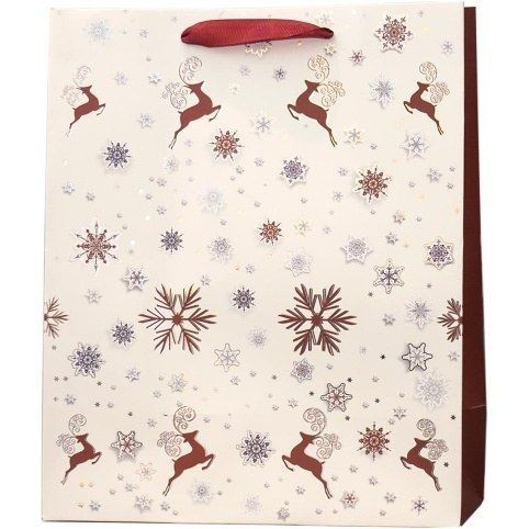 Luxusní dárková papírová taška se zlatými nebo stříbrnými prvky.