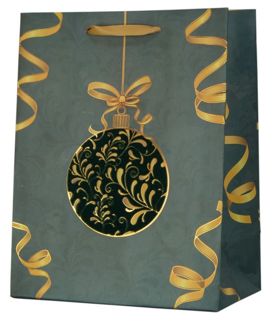 Luxusní dárková papírová taška se zlatými nebo stříbrnými prvky.