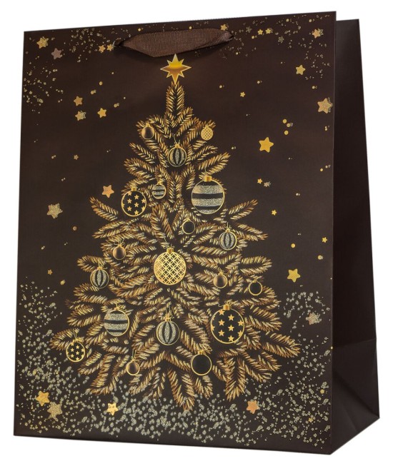 Luxusní dárková papírová taška se zlatými nebo stříbrnými prvky.