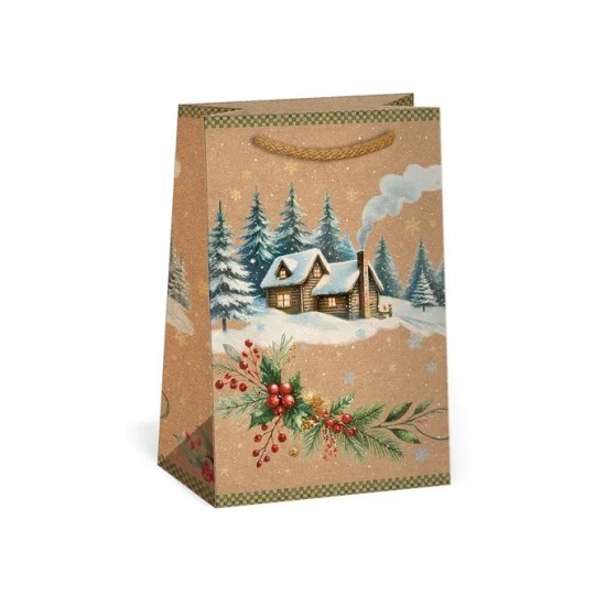 Vánoční papírová dárková taška NATUR s originálním designem.