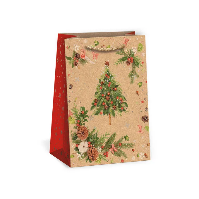 Vánoční papírová dárková taška NATUR s originálním designem.