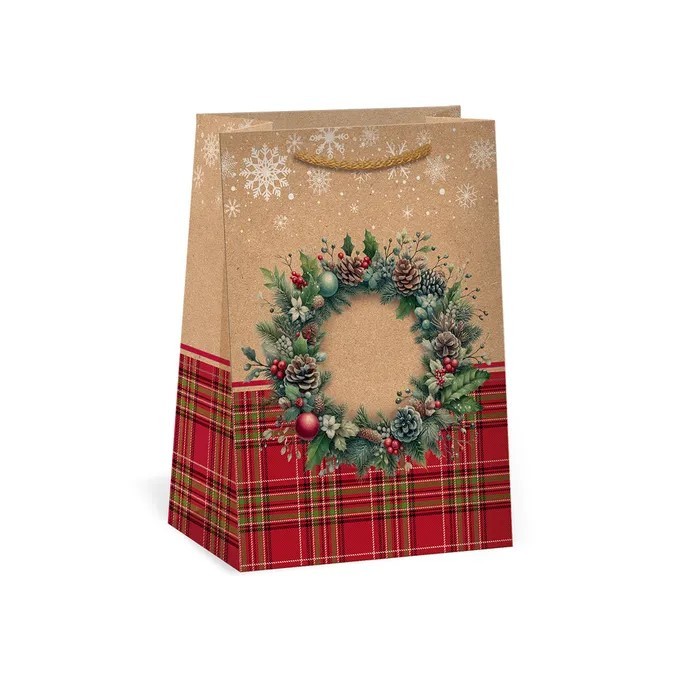 Vánoční papírová dárková taška NATUR s originálním designem.