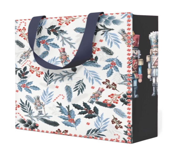 Elegantní papírová dárková taška s uzavíratelnými klopami v horní části. Klopy umožňují tašku bezpečně uzavřít a díky této konstrukci lze tašku využít nejen jako tašku, ale i jako dárkovou krabici.